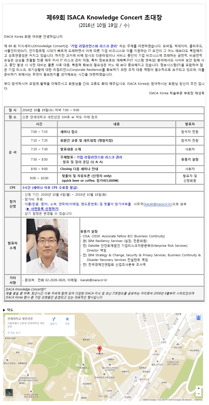 Á¦69ȸ ISACA Knowledge Concert ÃÊ´ëÀå - 10¿ù 19ÀÏ(¼ö)