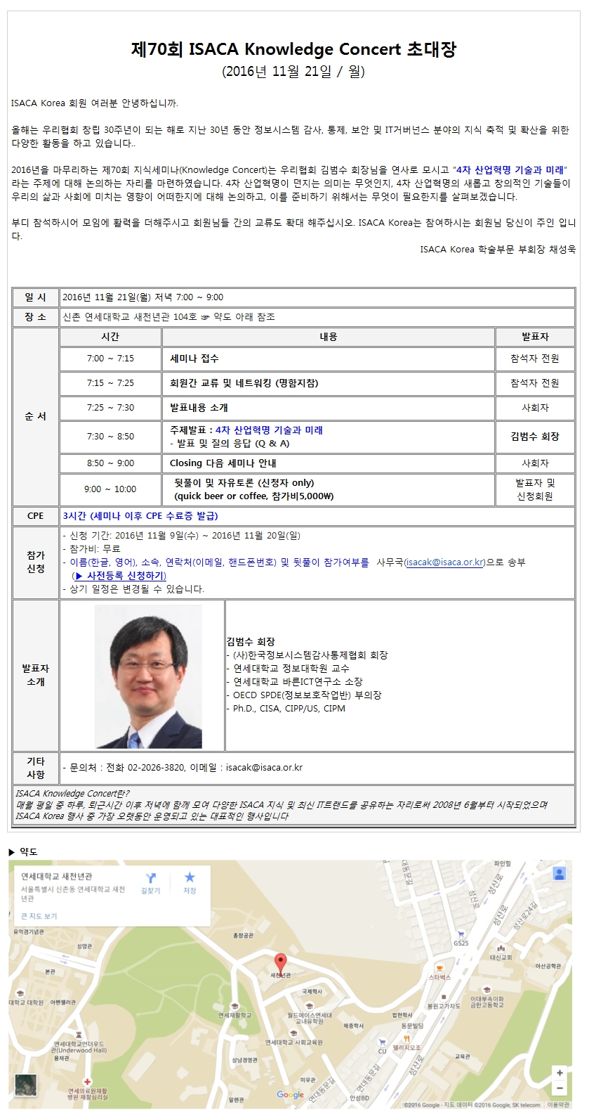 Á¦70ȸ ISACA Knowledge Concert ÃÊ´ëÀå - 11¿ù 21ÀÏ(¿ù)